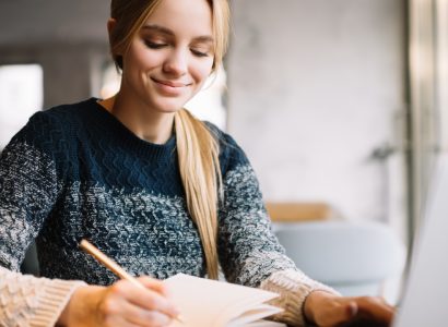 Beautiful Woman Studying Online